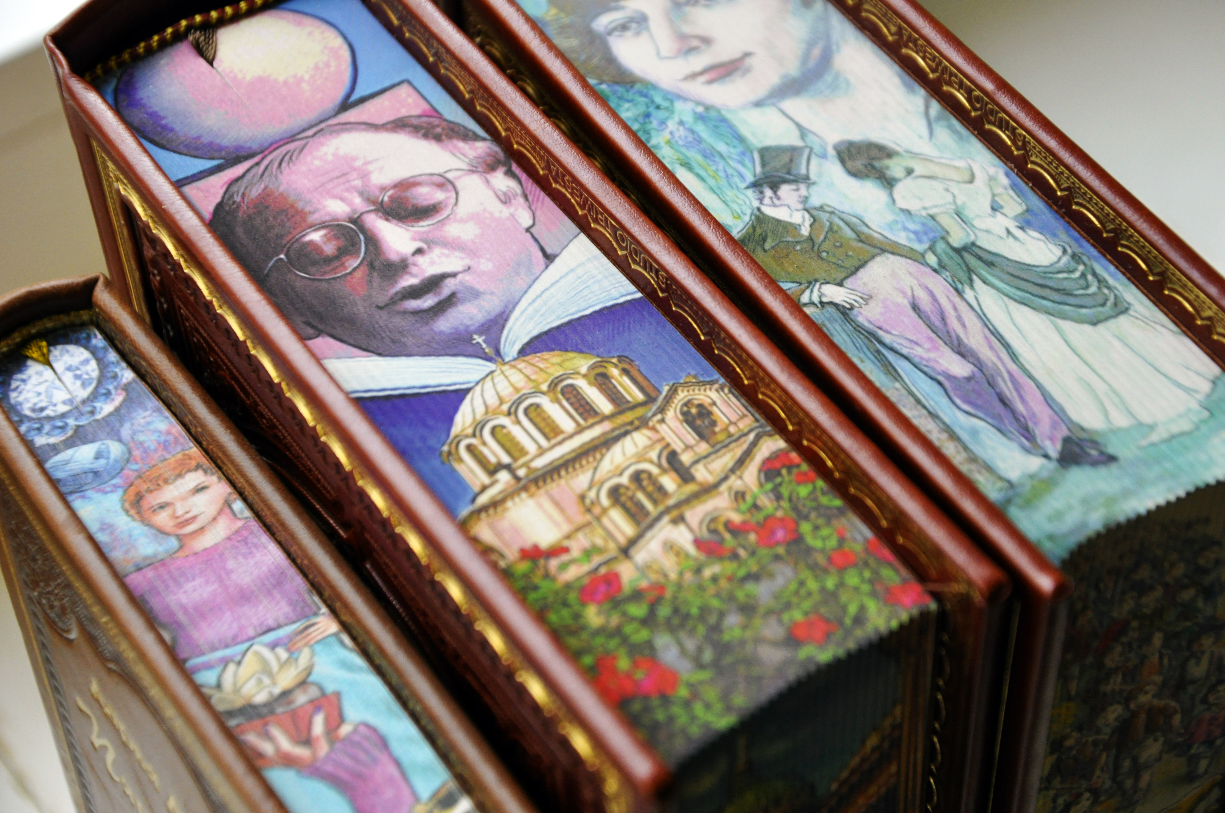 Для переплета мы используем любые переплетные материалы. Для отделки - все виды тиснения. Тиснение золотом, блинтовое, полнообъемное (в том числе - портретное) конгревное тиснение.